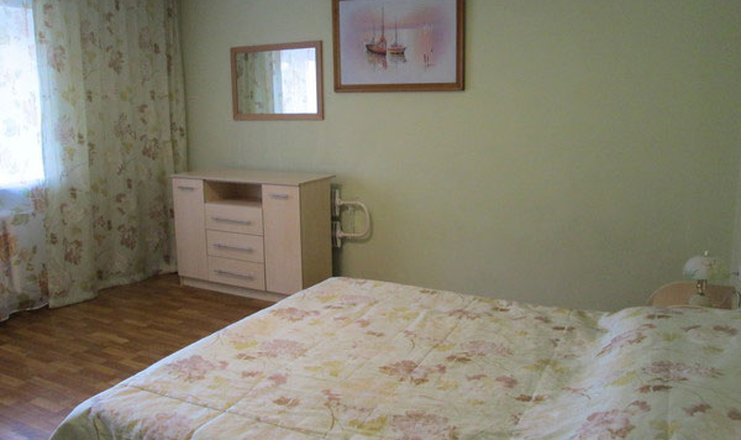 В номере: зеркало, кровать двуспальная, кровать односпальная, набор мягкой мебели, прикроватные тумбочки, стол, стулья, шкаф, набор посуды, телевизор, холодильник, чайный набор посуды, электрочайник